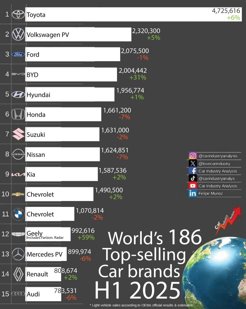 TOYOTA – THƯƠNG HIỆU Ô TÔ BÁN CHẠY NHẤT THẾ GIỚI H1/2025
