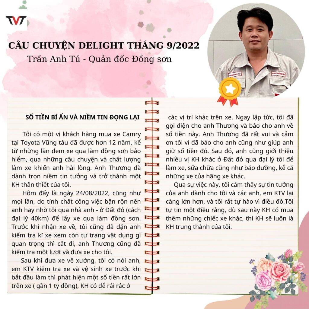 Câu chuyện Delight tháng 9 – chia sẻ từ anh Trần Anh Tú- Quản đốc