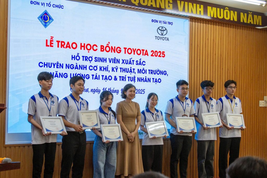 Tháng 12/2025, Toyota Việt Nam cùng Đại lý Toyota Sông Lam, Toyota Vinh và Toyota Quảng Bình đã trao tặng 123 suất học bổng với tổng trị giá 738 triệu đồng đến những em sinh viên suất sắc thuộc 5 lĩnh vực mũi nhọn: Cơ khí, Kỹ thuật, Môi trường, Trí tuệ nhân tạo và Năng lượng tái tạo đến từ 18 trường đại học trên toàn quốc.