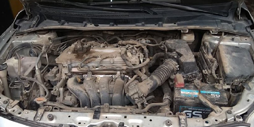 - Khi mở nắp capo, thấy bụi dày, dầu mỡ bám quanh nắp máy.
