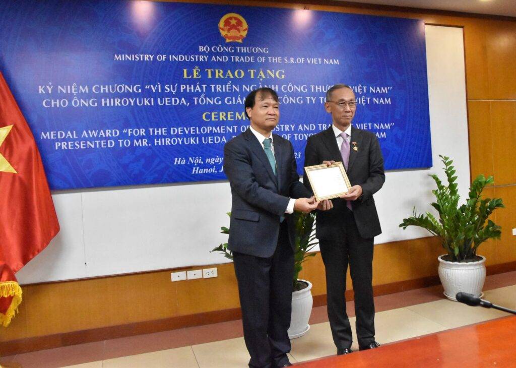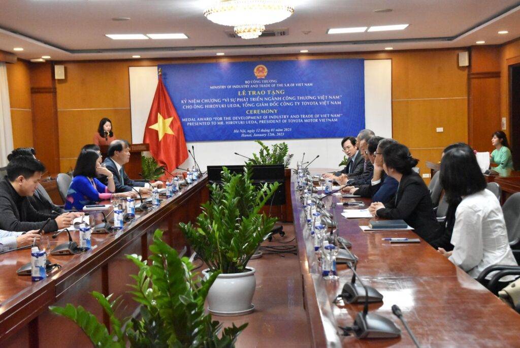 Sáng ngày 12/1/2023, tại trụ sở Bộ Công Thương, thay mặt lãnh đạo Bộ Công Thương, Thứ trưởng Đỗ Thắng Hải đã trao Kỷ niệm chương “Vì sự phát triển ngành Công Thương” cho ông Hiroyuki Ueda – Tổng giám đốc Công ty Ô tô Toyota Việt Nam do đã có thành tích góp phần xây dựng và phát triển ngành Công Thương.