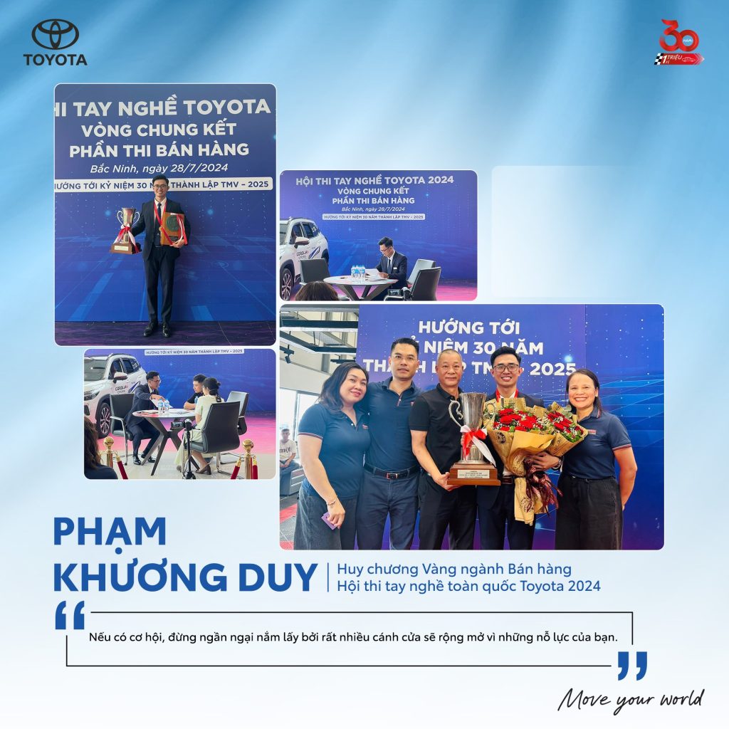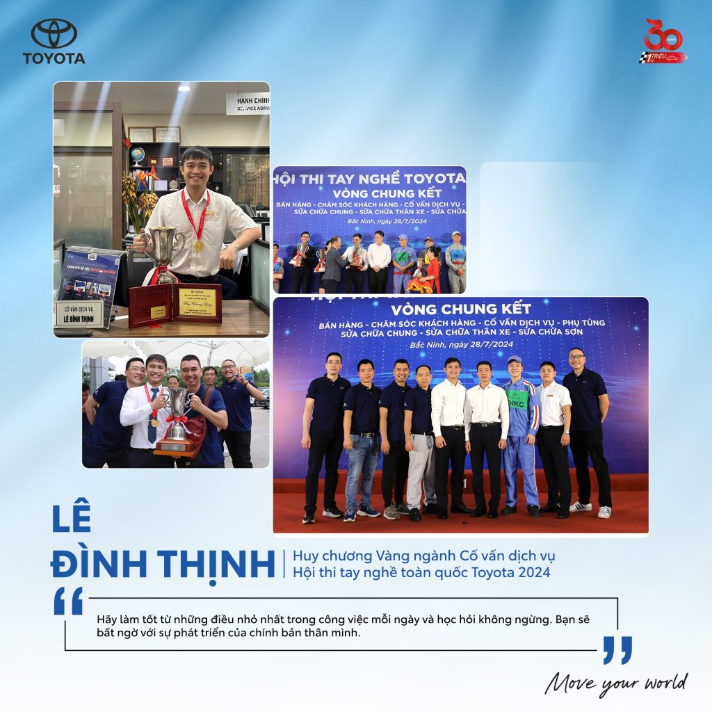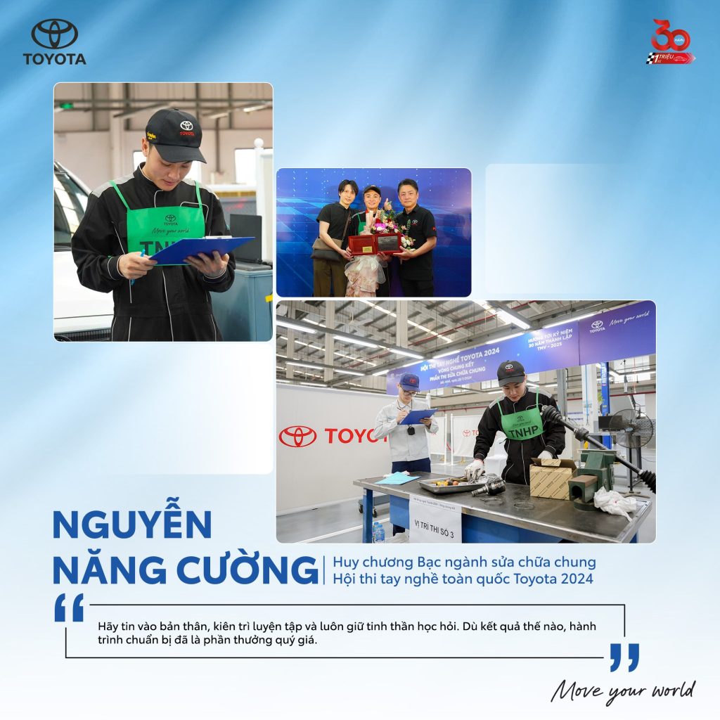Minh chứng rõ nét cho tinh thần đó chính là Hội thi Tay nghề Toàn quốc Toyota. Bắt đầu tổ chức từ năm 1999, hội thi đã quy tụ những thí sinh xuất sắc từ hệ thống đại lý trên toàn quốc tranh tài ở nhiều hạng mục, thể hiện rõ nét văn hóa học hỏi và tinh thần không ngừng hoàn thiện.